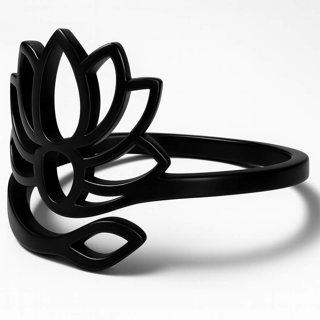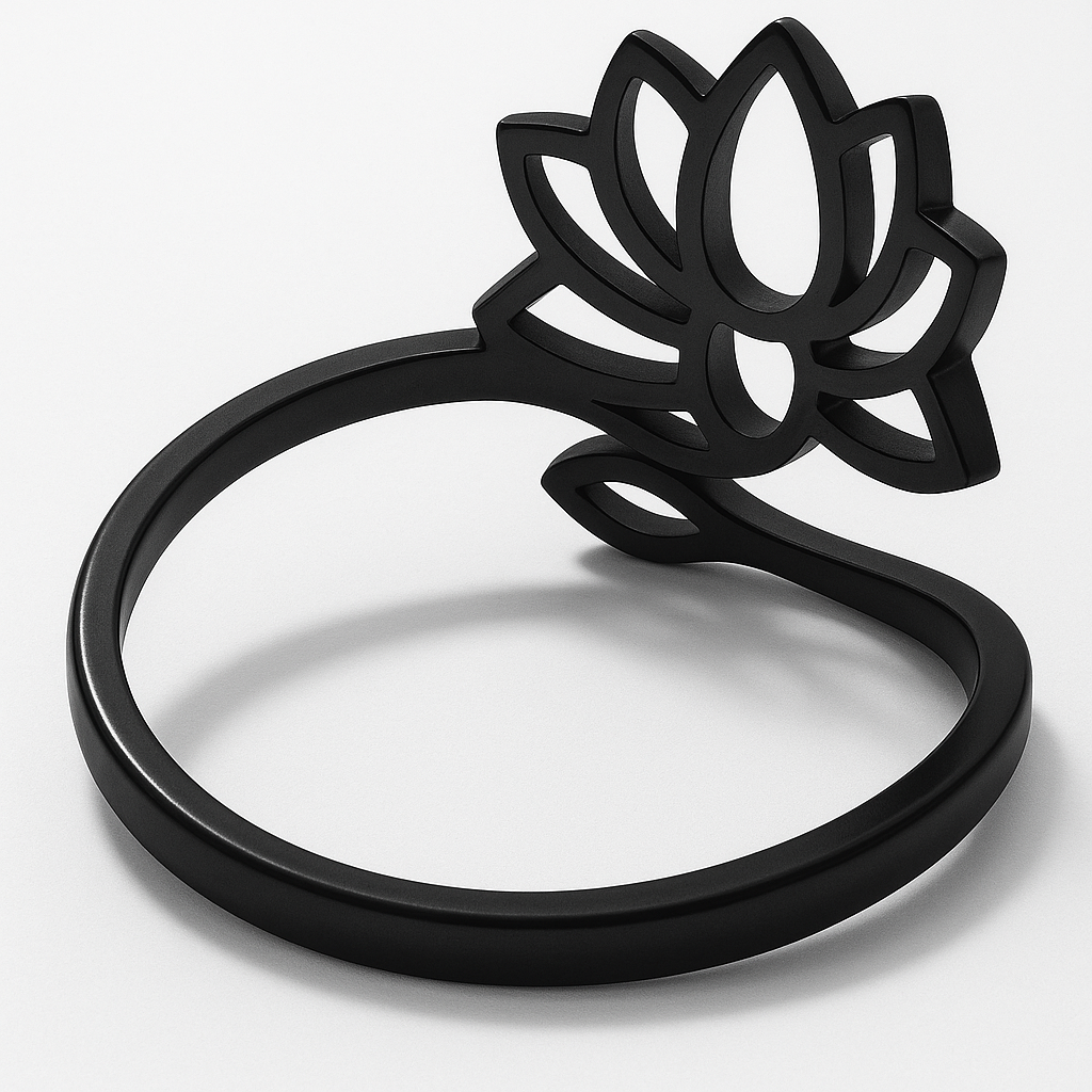 Une bague réglable au joli design floral. D'inspiration zen, je te conseille de l'associer avec notre collier pendentif MANTRA en acier inoxydable et/ou notre bracelet MANTRA en silicone . Originale en ACIER INOXYDABLE noir , elle ne te quittera plus jamais, elle résiste à l'eau sans changer de couleur ! Édition limitée, elle connaît un vif succès, ça pars vite !!